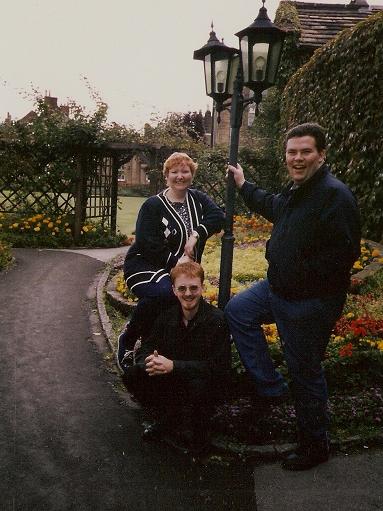 When the gals rejoined the boys it was at a ‘fantasy photo-booth’ where Trev was having his photo taken with Take That. Our laughter attracted some attention from passing sensible types but we didn’t care as we were on holiday! The resultant photo was most amusing. We investigated the restaurantarea and decided upon the cheap and filling Burger King. After selecting and queuing for our delicious and nutritious burgers and chips we settled down at a table where we where deafened by our silence as we ate. The service station was full of the usual shell-suit clad families on their way somewhere and business men with company cars, mobile phones, brief cases and, probably, jackets hanging up in the back of their cars. No doubt they were discussing touching base with someone or putting something on the back burner and running it up the flagpole to see which way the wind was blowing and putting it on their expenses.