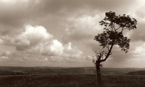 This trail was much more interesting (sorry Joy!). Already we could see for miles though most of our concentration was taken up by trying to avoid the many deposits left by cows. Across a field we saw a lone tree that was just gagging for us to take it’s photo. We duly obliged. We paused to admire the views in both directions before taking some artistic photos of ourselves with rocks and tree. We returned to the car wondering if Joy had driven off in it: Hell hath no fury like a woman’s corns.