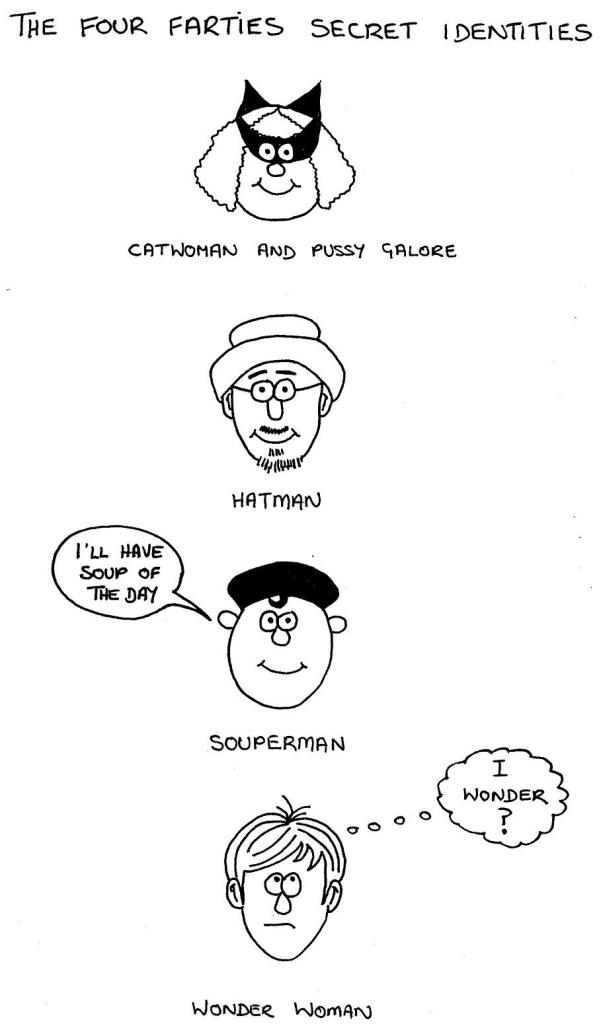 And so the Four Farties returned to their normal lives. Their secret identities so still so secret that even they don’t know who they are or what they’re doing.